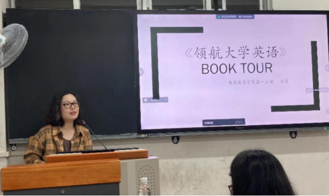 随后,董金伟教授分享了《领航大学英语》教材的总体编写思路。首先,《领航大学英语》注重多模态的语言输入,每个单元以听力和视频资料作为导入,编写过程着重设计了适合不同语言能力水平的课堂活动,不是简单地为课文列出生词和语法点,而是清晰地给出所有课堂活动开展的步骤,节省教师写教案所花费的时间。其次,课文的选取突出中华文化元素,培养员工讲好中国故事,配套的同步练习充分体现用所学词汇短语介绍中国文化习俗的能力。