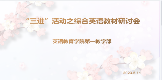 5月11日下午,第一教学部在白云山校区第二教学楼211教室举行了“三进”系列活动,主题为“综合英语教材研讨会”,参加者为教学部全体教师。