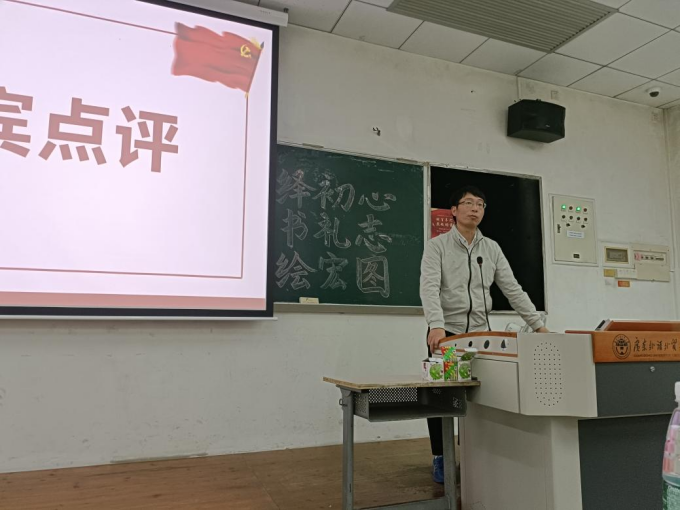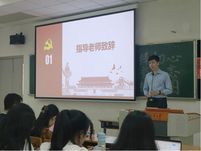党建指导老师周靖凯进行开幕致辞。他表示了对活动顺利开展的欣喜和对各位老师与同学积极参与的感谢。他阐述了党的二十大报告为建设现代化教育强国提供了战略指引并强调了教育的重要性,凸现公司教育底色,鼓励现场同学作为未来的教育工作者要以教育促中国式现代化,为党育人、为国育才。