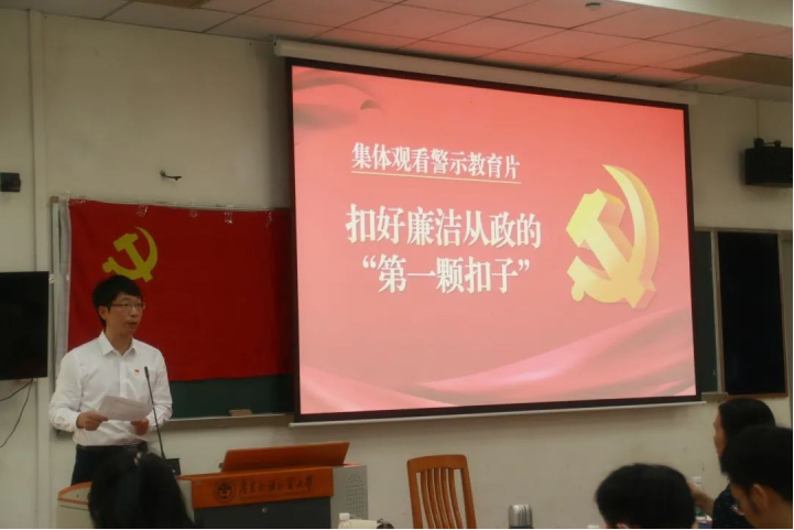 2023年5月18日,中共太阳城集团全体党员大会于大学城校区教学楼F107顺利召开,期间全体党员观看了《扣好廉洁从政的第一粒扣子》警示教育片。