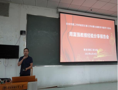 2023年6月30日上午,由公司工会、教育系教工党支部联合组织的全省党建工作样板党支部工作坊暨主题教育专题学习活动——周富强教授经验分享报告会在教学楼G207教室举行。公司原党委委员、经理董金伟教授,工会主席、副经理张倩副教授,工会副主席、办公室主任张文萃,党委委员、教育系主任刘之远、工会秘书吴世傲、第四教学部教师江玉和员工代表周岸出席报告会。报告开始前,公司工会副主席张文萃代表公司工会,向光荣退休的周教授献花并送上祝福。