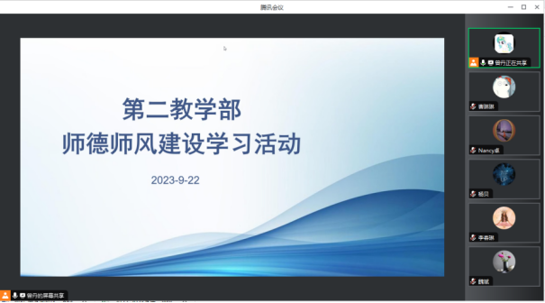 9月21日下午,太阳城集团第二教学部举行师德师风建设学习活动,会议由系部主任曾丹主持,全体教师线上参会。