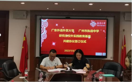 9月22日上午,公司吴岩经理,李惠胤、刘亮星副经理以及龙俊宏老师共同前往执信中学,参加公司研究生校外实践教育基地共建协议签订仪式。