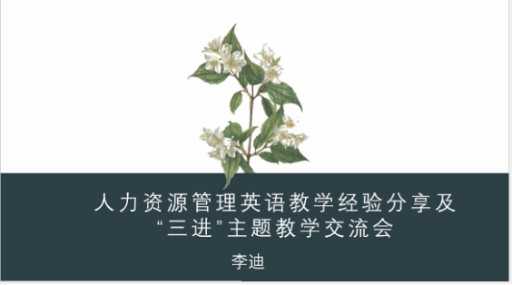 首先,交流会根据“三进”中习近平新时代中国特色社会主义经济思想的十个明确内容,详细介绍了创新、协调、绿色、开放、共享的发展理念,形成新发展论以及构建人类命运共同体理念和全球经济治理论这两个明确。随后,李迪老师从课程设计、教学经验和员工反馈三个角度对所教授的人力资源管理英语课程进行了介绍,并提出要遵从以员工为中心的教学理念,注重对员工在未来工作中会面临到的知识和能力的培养。她分享了如何将红色旅游、碳中和与碳足迹、新丝绸之路经济带等热点话题融入教学中去,由此激发员工主动了解人类命运共同体,培养民族自信。最后,邓谊老师和朱晓真老师提出了在教学中所遇到的疑问和困难,李悦、李碧燕和宫丽丽老师对此提出了自己的解决方法和意见。此次交流会内容详实,内涵丰富,与会老师们参与积极,讨论热烈。