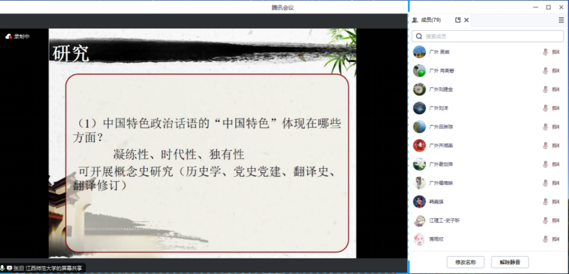 分享结束后,张汨博士与英语师范系教师党支部教师党员进行交流讨论。张汨博士提供了更多“三进”研究心得,并指出高校教师要积极履行“党建+专业”融合的使命,“三进”和思政研究要注重凝练性、时代性和独有性,才能助力国家形象建构,助力国际传播。
