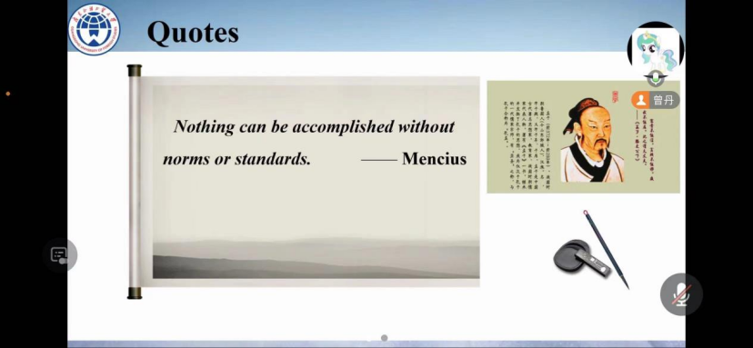 为体现“学以致用、术业专攻”的教学理念,曾丹老师为此次授课对象法学专业本科生选取了与其专业背景紧密相关的学术阅读材料“IRAC Reasoning”,将法学专业知识和学术推理技能融于一体,引导员工在学习知识和提升技能的同时,深入理解平等、公正、法治的核心价值观,达成课程思政目标。授课中曾丹老师教态端庄,讲解细致,条理清晰,节奏稳健,师生互动频繁,学习范围浓厚。