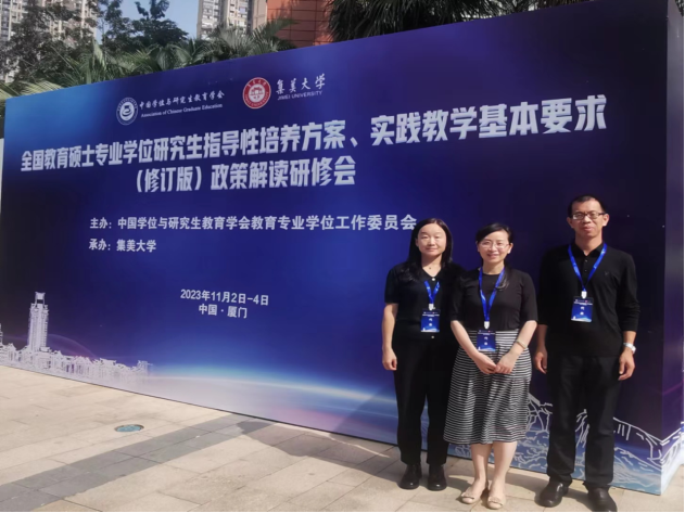 为帮助理解和推动执行2023年修订的指导性培养方案和实践教学基本要求,指导各培养院校依据新的文件精神开展教育硕士公司产品工作,教育专业学位工作委员会于2023年11月2日-4日在福建厦门面向东部地区培养院校召开政策解读研修会。会议由集美大学承办,来自14个省市的100所院校共190多位代表参加了研修会。太阳城集团李惠胤副经理、康叶钦主任和中国语言文化公司贝先明主任代表公司参与了此次会议。