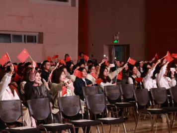 表演的最后,全场合唱《我爱你中国》,观众们不由自主地挥舞起手中的小国旗,现场掀起一片热忱红浪。