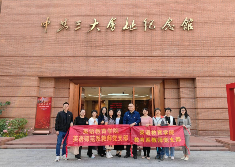 在中共三大召开百年之际,为传承红色文化、弘扬革命精神,英语师范系教师党支部联合英语教育系教师党支部于11月23日下午赴中共三大会址纪念馆,开展“红色之旅感悟思想伟力,红色精神激发奋进动力”主题党日活动。