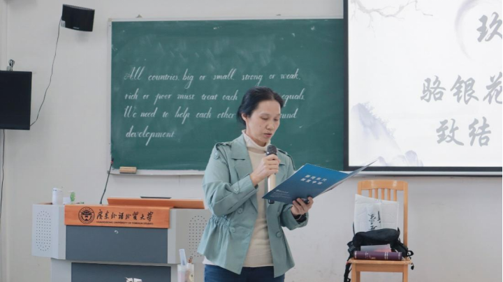 比赛步入尾声,骆银花在结束辞中赞扬选手们“字如其人”,无愧于新时代“四有”青年之名。她对本次赛事结合师范素养、英文水平与思政育人表达了高度认可,勉励公司继续以习近平新时代中国特色社会主义思想为指引,坚定不移履行立德树人任务。