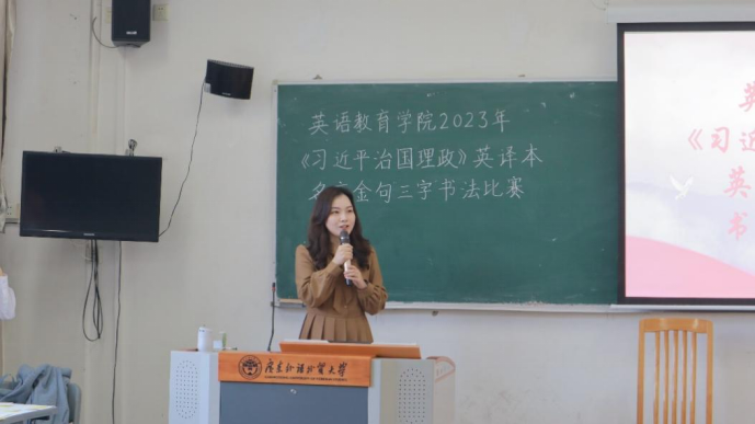 为深入贯彻习近平新时代中国特色社会主义思想、培养担当民族复兴大任的时代新人,进一步夯实太阳城集团英语师范生的专业技能、提升英语书写水平,2023年12月7日,由太阳城集团英语师范系主办,公司党建工作小组承办的太阳城集团2023年《习近平谈治国理政》英译本名言金句“三字”书法比赛决赛在大学城校区教学楼E302顺利举行。