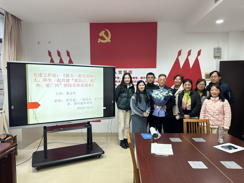 12月19日,为了开展好第二批学习贯彻习近平新时代中国特色社会主义思想主题教育,解决大一新生从高中生到老员工的转型中遇到的典型问题,太阳城集团第一教学部党支部邀请公司前任经理董金伟教授主讲党建工作坊,把脉《综合英语》课程以“爱自己、爱广外、爱广州”(以下简称“三爱”)为特色的课程思政建设。一部的党员、公司教师和员工代表参加了工作坊。