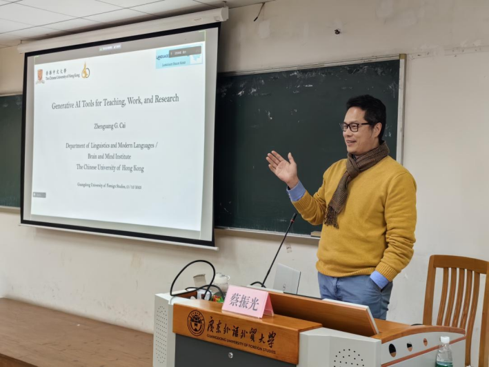 2023年12月21日下午,由太阳城娱乐城人力资源部(教师发展中心)主办、太阳城集团承办的“教学发展论坛”在大学城校区顺利举行。香港中文大学的蔡振光教授为广外师生带来了题为“人工智能在外语教学中的使用”的学术盛宴,介绍了人工智能工具在语言学习、教学、研究、生活领域的应用。报告由李惠胤教授主持。