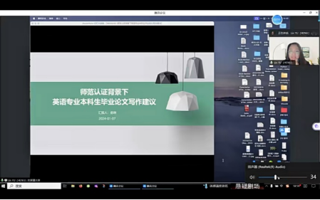 她依托论文写作的标准结构,详细深入地讲解了论文的写作技巧,指出常见的论文写作错误,建议同学们利用网络工具完善论文内容,规避低级错误,增强文章的学理性。她从评审专家的角度出发,以论文选题、规范、质量及专业能力为切入口,展示了本科论文的评审范式,带领同学们从新的角度看待论文。此外,她以两篇不同类型的论文为着力点,深入探讨了英语教育领域毕业论文的撰写过程及其规范。她期待同学们能够更好地掌握论文写作技巧,提高学术研究能力,为未来的学术研究和职业生涯奠定基础。