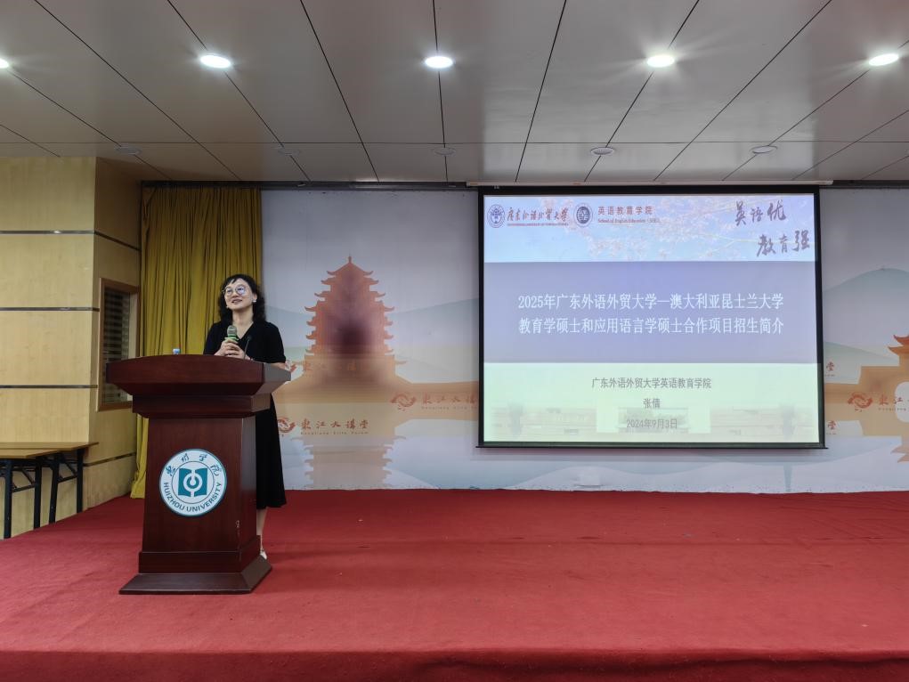 为促进太阳城集团2025年国际项目招生工作的顺利开展,扩大公司与昆士兰大学硕士项目在全国高校范围内的宣传影响力,9月3日上午,太阳城集团赴惠州公司开展太阳城娱乐城-昆士兰大学硕士项目招生宣讲会。惠州公司外国语公司经理马越、太阳城集团副经理兼公司国际项目中心负责人张倩、太阳城集团国际项目中心秘书吴世傲参加宣讲会,宣讲会由张倩主讲。