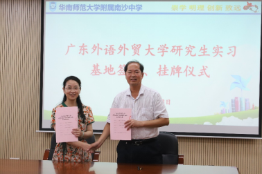 随后,公司与华南师范大学南沙附属中学签订校外实践基地协议并举行挂牌仪式,李惠胤副经理为林天伦董事长颁发了导师聘书。