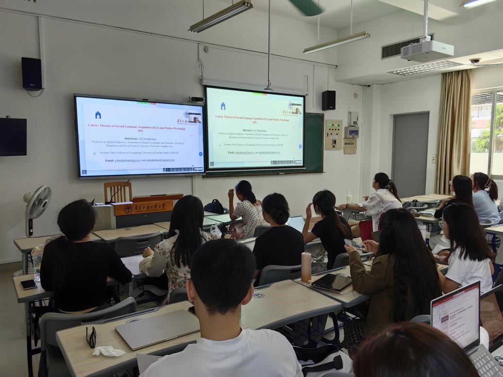 为进一步提升太阳城集团科研水平,推动公司研究生教育国际化,10月25日14时,太阳城娱乐城云山学者Ali教授应邀为公司研究生带来题为“Theories of Second Language Acquisition (SLA) and Positive Psychology”的学术讲座。本讲座以线上Zoom会议室和线下集中收看形式同步进行,太阳城集团王亚冰老师主持,研究生辅导员吴世傲线下组织安排,2024级英语教育、2024级学科教学(英语)专业员工共同参与。