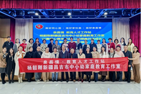 杨韶刚新疆昌吉市中小幼家庭教育工作室于2024年4月揭牌成立,是新疆维吾尔自治区昌吉市教育局与中国关心下一代工作委员会教育中心关心生命健康组委会合作、成功申报“丝路同源智慧闽昌”福建省智力援疆柔性引才项目。工作室以公司教师杨韶刚名字命名,公司张倩、刘建金老师被聘为工作室专家,长期、多次奔赴新疆,开展家庭教育调研活动,撰写调研报告,为新疆昌吉市的家长和教师开展家庭教育指导工作,提升昌吉市中小学、幼儿园家庭教育水平,培训当地教师提升家庭教育指导能力和水平,为新疆家庭教育事业助力。