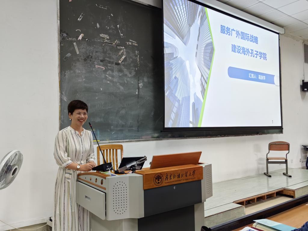 团队建设与发展是公司发展的核心驱动力。在团队建设与发展分享交流环节,三位教师带来了前沿、务实、精彩的专题分享:葛静萍副教授以《服务广外国际战略,建设海外孔子公司》为题,结合公司工作实际,分享了在服务公司国际化战略背景下,参与海外孔子公司建设的宝贵实践经验、面临的挑战以及对未来国际化办学路径的深入思考。