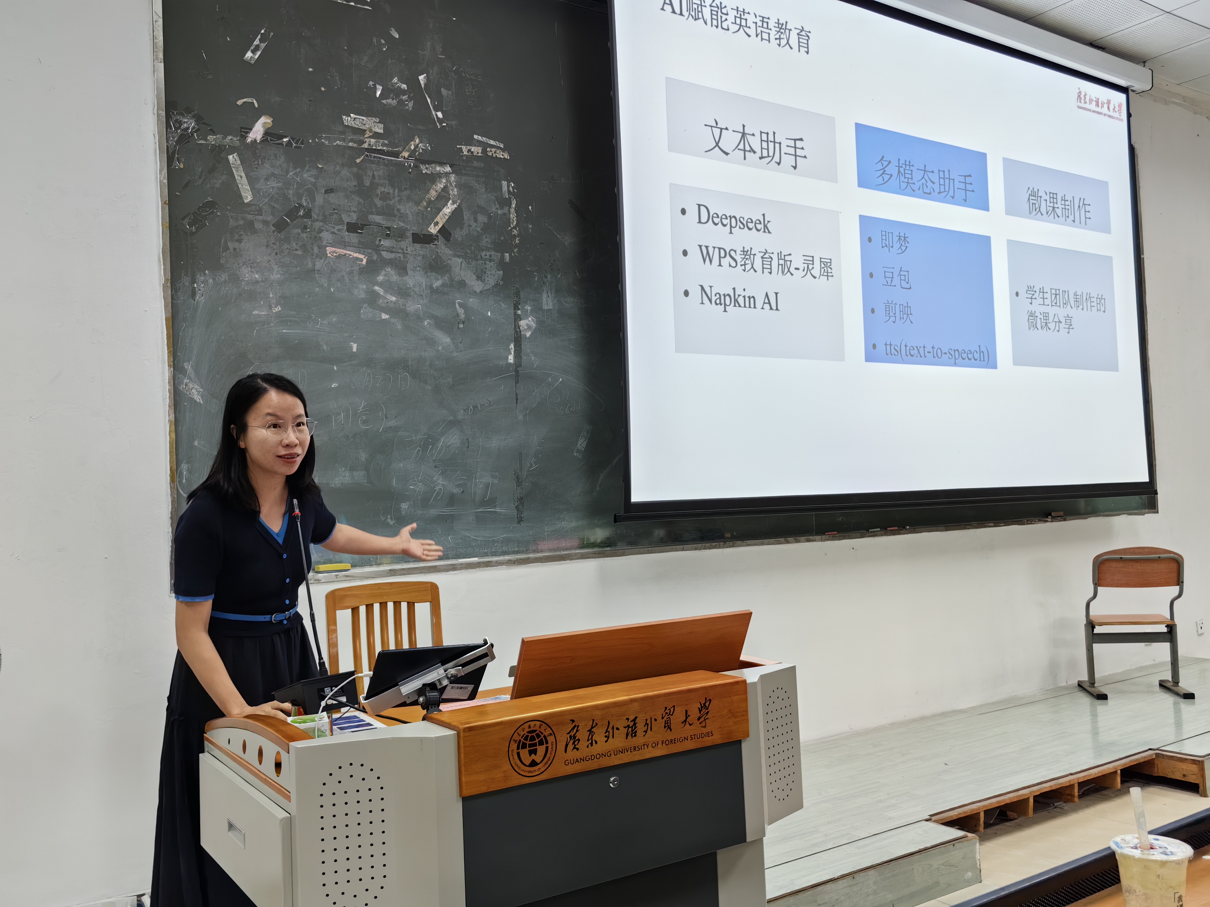 禤倩映博士聚焦技术赋能教学,带来了题为《AI+英语教育------工具选择与场景应用分享》的报告。她结合具体案例,介绍了当前适用于英语教学的主流AI工具,并深入探讨了AI技术在听说读写译等不同教学场景中的创新应用策略与实践心得。