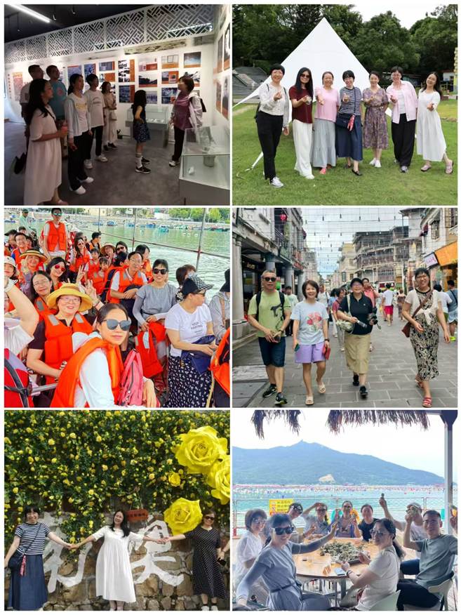 第二天,老师们来到黄花山森林公园。作为全国唯一的海岛国家森林公园,这里拥有丰富的热带、亚热带植物资源,大家在领略自然之美的同时,也体会到生态保护的重要性。紧接着,众人参观了南澳抗日纪念馆,通过馆内的展品与资料,深入了解南澳官兵及自卫队员在抗战时期的英勇事迹,接受了一次深刻的爱国主义教育。当日下午,会员们还体验了南澳海耕文化之旅,乘坐渔排出海,亲身感受当地独特的渔业生产方式,了解 “百千万工程” 在推动乡村产业发展中的积极作用。