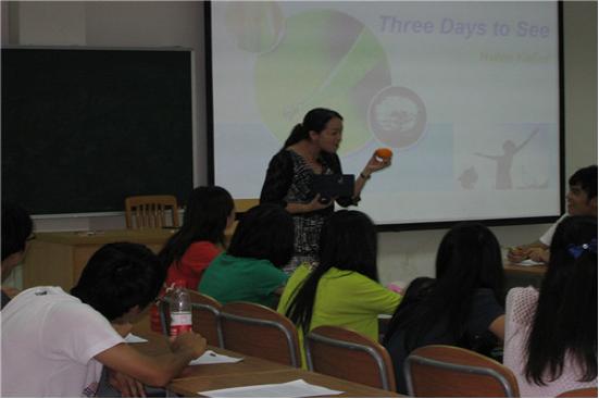 曾丹热情的课堂风格、优秀的语音语调,一直都广受员工们的好评。经贸公司的黄桂桃同学就这样评价:“曾丹老师英语很厉害。她是一个很可爱的人,跟全班都玩得很好很开心。”