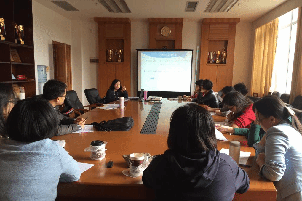 2015年3月19日下午,教育系在公司会议室召开了本学期第一次工作会议。会议首先进行2014年度考核的思想品德互评环节,由支部书记齐湘燕老师主持。随后,系主任助理谢剑萍老师主持讨论2015版教学计划修订事宜。谢博士首先向老师们介绍了大学新颁布的学分制管理规定,并简要介绍了现行的英语教育专业2013版教学计划,明确了教学计划修订的指导思想和总目标。即适当降低专业总学分,非外语类专业必修和选修课学分比例调整至6:4,强调自主学习、实践性、参与式和研究性教学;总学分由现有的157分缩减至145-155分,其中必修课由现在的113学分(占71%)减少为90学分左右(占60%),选修课由现在44学分(占29%)增加为60学分左右(占40%)。根据以上目标和原则,老师们畅所欲言,各抒己见,提出了很多具有建设性的建议,为后续的调研论证工作奠定了重要的基础。