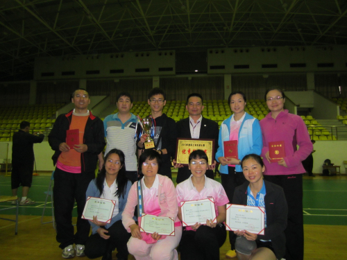 本届羽毛球大赛适逢公司承办的全国英语教师发展研讨会,因此公司的参赛报名和组织工作都受到了影响。但是我们的羽球协会排除万难,从赛前动员、队伍操练、战术布置、服装购买、后勤保障、场上加油等各方面都考虑周全,安排妥当。院领导们在繁忙的研讨会会务工作当中也不忘关怀过问赛事情况,协助解决问题,特别是林书记和曾主任利用会后工作间隙到场慰问队员,令队伍精神振奋。最终公司凭借优秀的参赛组织工作,连续第五年荣获赛事“优秀组织奖”(注:优秀组织奖每年只设4个名额)。