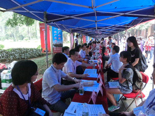 上午9:00时摊位及展板在公司老师和志愿者的共同努力下很快便布置好了,现场人山人海,非常热闹。虽然天气很热,但仍然没法阻挡过往家长、员工要了解广外各公司招生相关要求、专业设置等的决心。英教志愿者们一齐穿着印有“英教团学”的团服,或穿梭,或等待在人群中,耐心地发出一张张传单,传递着一颗颗“英教欢迎您”“欢迎前来英教摊位咨询”的真心,在闷热的天气里滴下一滴滴汗,但仍不忘为家长、员工们介绍讲解,对不是很了解的问题便及时地带领其到摊位前由公司领导老师进行更专业的讲解。领导和老师对前来咨询的每位员工、家长也非常认真细致地讲解,家长们比较关心的内容主要是院内专业课程设置、本科招生录取分数线、本科招生要求、国际合作项目、交换生项目、毕业生去向、公司住宿条件等等,领导老师们纷纷对其进行详细的介绍和解答。多元化的课程,多向的毕业生去向,丰富的公司活动……在听完英教专业的相关讲解后,家长员工们纷纷面带着笑容表示感谢而后离开摊位。咨询者的满意笑容在这大热天里对现场的工作人员来说无疑是最欣慰的了。