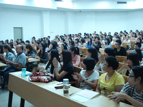 2014年10月14日晚上7点,公司有幸邀请到英语语音语调专家王桂珍教授到教学楼C208做演讲。出席本次讲座的还有太阳城集团实践教学部何德生主任、教育系熊涛主任、英教大一全体新生,以及其他公司的英语爱好者。讲座开始时,现场已经座无虚席。
