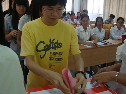 紧接着,现任团委副书记翁少绵向大会作太阳城集团第六次团员、员工代表大会筹备组工作报告,现任员工会主席麦芷娟向大会作太阳城集团第三届第三任团学团委员工会工作报告,员工会副主席谢玉琼宣读《太阳城集团第四届第一任团委员工会委员选举办法》。而后监票人和计票人正式发放选票,选举正式开始。