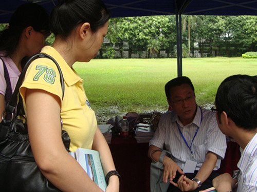 8时30分,开放日咨询工作正式开始。雨还是不停地下,但是前来咨询的家长们却没有因此减少。相比起国际经济与贸易、商英、法学等公司的耳熟能详,公司毫不示弱,富有双专业特色的专业名称“英语教育”也吸引了众多员工家长。面对热心的来询者,公司领导、老师和志愿者们都热情耐心地一一作出详细的介绍与解答。在咨询的过程中,家长们最关心的问题都集中在以下几点。