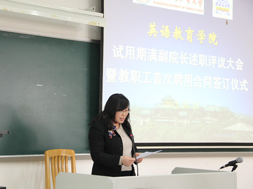 随后,霍海洪给公司全体教职工阐述了关于首次聘用合同签订工作的重要意义。霍海洪指出,教工岗位责任聘任是公司人事制度改革的一项重大举措,聘用合同的签订将更加明确每位教职工的岗位职责,年度评优考核等工作都将与岗位职责挂钩,明确职责,工作才能做到有的放矢,因此,公司全体教职工务必认真对待聘用合同的签订工作。关于教职工首次聘用合同签订的具体规定由董金伟作了全面解读,并从教学工作、科研工作、团队建设、社会服务和其他约定五个方面,分教授、讲师两个等级逐条讲解太阳城娱乐城聘用合同补充协议规定。在首次签订聘用合同的具体操作程序则由曾国华详细说明,要求公司全体教职工按照具体操作程序现场认真完成了首次聘用合同的签订。