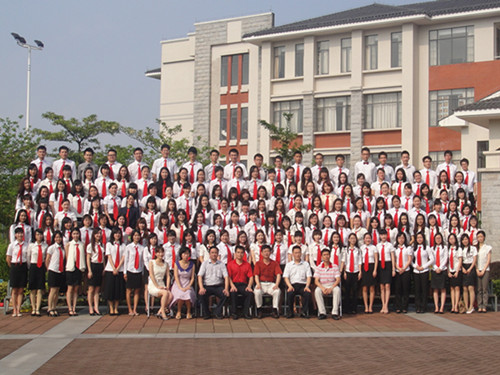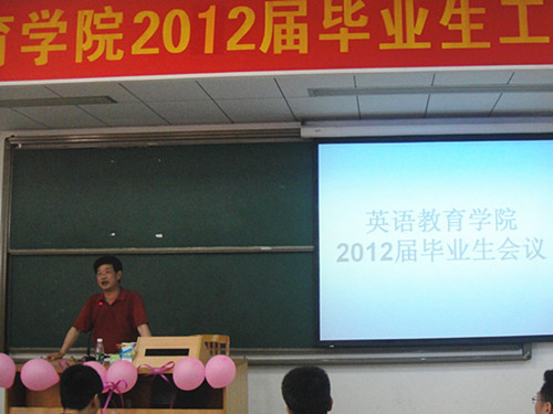最后本届毕业生代表陈伟静与大家分享应聘工作的心得。同学指出,寻找工作的过程中最重要的两点就是明确的目标和自信。在其应聘过程中,凭其周全的工作规划和自信出色的表现,成功战胜了211公司的毕业生和研究生,获得了自己钟情的教师岗位。在结尾时,同学动情地说:“让我们怀念广外和公司吧!也许这并不是你人生最幸福、最开心的时段,但这里肯定存在着一个老师,一个同学或一句话,让我们值得永远的怀念。” 陈伟静同学的深情话语引发了同学们的共鸣,在全场掀起一阵热烈的掌声。在感人的氛围中,公司2012届毕业生就业工作动员大会圆满落幕。随后同学们和老师们陆续前往院系楼前广场,拍摄毕业照以作留念。