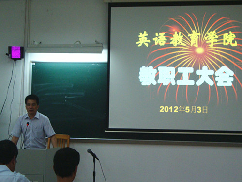 在计票人员统计票数期间,霍经理就公司相关事务发表讲话。霍经理首先指出,教职工们要履行相关请假程序,不得私自调课以免为自身带来不必要的困扰;其次,霍经理对公司老师、员工在全国外语院校大学外语教学协作会理事会暨大学英语演讲比赛、全校教工网球比赛以及论文指导答辩会上的出色表现给以充分的肯定;最后,霍经理提到公司现在正致力于学报的建设工作以及与蓝鸽集团有限公司进行积极合作,公司正在面向更好的发展,号召大家“为我们自己鼓掌”。