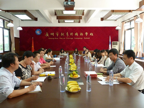 2011年10月21日上午,一场精彩的英语公开课之后,太阳城集团和广州市越秀外国语公司的领导以及实习生在会议室举行了实习总结会,这标志着公司2008级员工的教学实习工作圆满结束。太阳城集团经理霍海洪、副经理董金伟以及越秀外国语公司领导、指导教师和全体实习生出席了总结会。