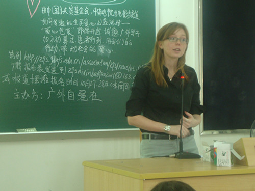 听完宝贵的美国文化亲历和留学秘诀后,外教Tabitha为在场的听众们分析了美国的教育体制与教育方式。她提到,在美国的公司中,员工们通常会涉猎各式各样的学科,在选课上拥有很大的自由度;但同时,员工也有自己必须要尽的义务,要像一个成年人一样对自己的学业负责。在讲到美国的学习生活时,她向大家强调了主动参与的重要性,并高度赞扬了课堂presentation对加强同学们沟通能力以及自信的作用。Tabitha最后还强调,英语水平对于一个职工来说非常重要,因为英语是沟通的桥梁,只有掌握英语好英语,才能自由地与来自世界各地的同学们交流、交往,博采众长。