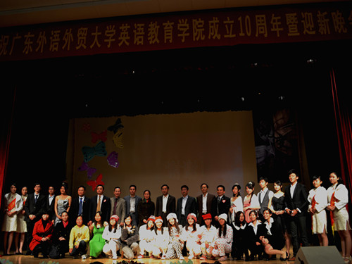 今夜,星光璀璨,彩蝶飞舞,太阳城集团筹备已久的公司十周年暨迎新晚会于12月3号晚在艺术楼小剧场隆重举行。英教师生齐聚一堂,共同欢庆这别具意义的时刻。出席晚会的嘉宾有全国外语院校大学外语协作会会长、北京第二外国语公司副董事长邱鸣,全国外语院校大学外语协作会常务副会长、北京第二外国语公司应用英语公司经理张喜华,科学出版社社长胡升华,广州易贝教育科技有限公司首席执行官张继承,校团委书记陈兵,公司经理霍海洪,公司党委书记林绍雄,副经理董金伟,副经理肖建芳及公司党委副书记何伟儒。