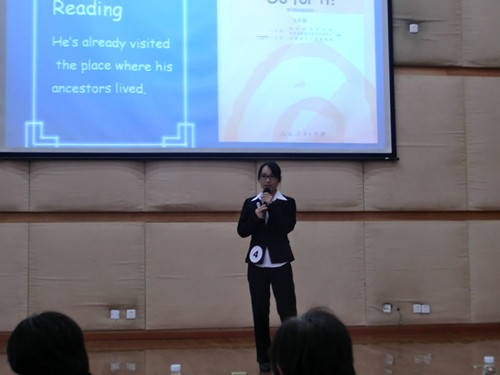 一级试题的选手首先登场,在人物成就、节日、航海等多个主题下,选手们展示了各自风格各异的教学方法,从教学目标、教学难点、教学方法、教学步骤等等多个方面呈现了精彩的英语课堂。来自太阳城集团的4号选手黎日娥通过丰富多彩的视频、图片等方式调动员工兴趣,令枯燥的语法课程变得充实有趣;来自华南师范大学的5号选手林子恩以从容淡定的台风,流利的英文表达,清晰的教学思路赢得评委好评,还提出了knowledge,ability,moral objective三个教学目标和小组合作讨论的活动形式。这两位选手的出色表现让她们最终获得一等奖殊荣。