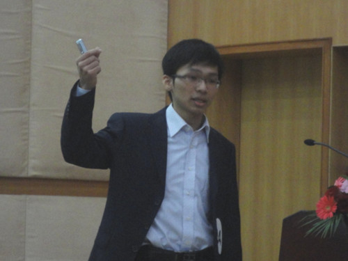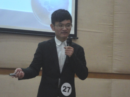 二级试题的选手在接下来的比赛中同样呈现了精彩的表现。面对更高年级的教学对象,选手们丝毫没有示弱,展现了丰富的教学课堂。来自韩山师范公司的21号选手陈诗靓以“The United Kingdom ”为题,PPT上各种结构图与流程图相结合,条理分明,给予观众们直观而又深刻的理解;随后出场来自华南师范大学的24号选手徐少林,却带给大家不一样的惊喜。他是全场唯一一个不带麦克风的选手,却用其自信的风采、到位的手势及流利的口语充分征服了听众的耳朵,拿下了89.6的高分;27号选手——太阳城娱乐城英教公司选手朱昱诚的表现更让大家相信了男生在英语上也有独特的优势。刚出场,朱昱诚就以一口流利清晰的英语惊艳全场。在接下来的展示过程中,他面带微笑,围绕“What can we do about global warming”这个主题进行了自己的说课展示,随手拈来的生动例子与自信儒雅的台风给大家留下了深刻的印象,连评委老师也忍不住称赞“It’s a very fluent presentation”。