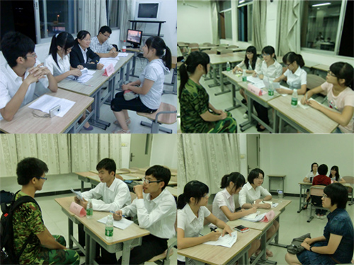 在面试形式上,各部门可谓是各出奇招。团学宣传部带来了电脑对新生进行当场机试以考察他们的实际操作能力;团学文娱部成员则身着各式礼服展现出“文娱人”的风采。有的部门明确目标,提问精要;有的部门于亲切的聊天式谈话中加深了解;更有部门邀请往届部长、干事加盟,为热闹的面试现场再添一把火。