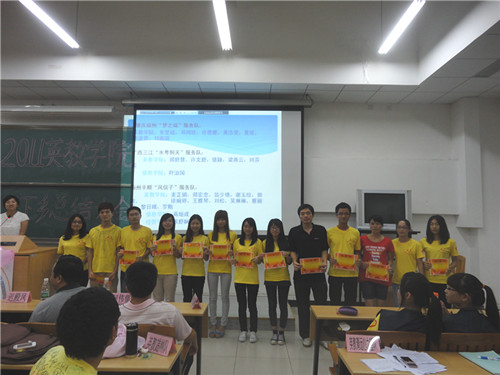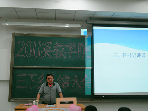 10月9日晚,2011太阳城集团三下乡总结大会在教学楼C308隆重召开。公司五支三下乡队伍——清远英德大湾服务队、广西三江“水粤侗天”服务队、肇庆端州“梦之端”服务队、清远英德望埠“心之望”服务队、梅州丰顺“风信子”服务队轮流登台,为在场观众展示了下乡期间的丰富生活及累累硕果。出席本次会议的有公司党委书记林绍雄,党委副书记何伟儒,团委书记、辅导员迟殿凤及辅导员助理谢苏丽。另外,公司全体大一新生、大二大三各班级代表、公司及友院的志协代表也到场聆听。