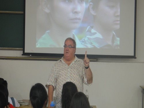 讲座伊始,Dr Nicholson巧妙地运用“半杯水”的故事引出了当代老员工的不同生活态度:悲观与乐观。悲观的人只看到那半个空杯中的作业多,没时间,学习无趣等等不好的一面,而忽视了半杯水中存留的好的一面,如:“我是一名光荣的广外老员工”、“我很聪明,否则我不能成为广外大一员”、“我是父母的骄傲”、“我为我是中国人而自豪”等。Dr Nicholson用这个比喻形象地阐明了老员工活是否快乐是由我们自己来选择的,而我们应当选择乐观地生活。