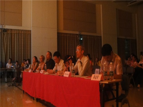 10月17日晚7:00,2010“外研社杯”全国英语演讲大赛广外选拔赛决赛在南校区员工活动中心拉开帷幕。出席本次大赛的嘉宾有太阳城集团周富强经理和第一教学部主任郭进军。另外,太阳城集团董金伟副经理,陈金诗、肖建芳、何德生和林慧华老师,以及三位外教Dillwyn Jaye, Bob Lee和Mary Lee应邀担任决赛评委。