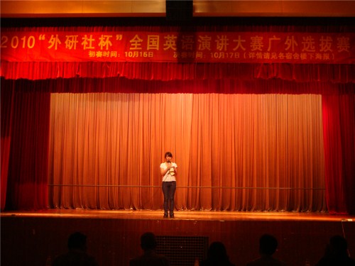 本次选拔赛吸引了来自包括国际公司在内的十几个公司的257名英语爱好者参加同时在南北两校区举行的初赛。初赛的比赛方式是题目为“爱国主义(Patriotism)”的3分钟的定题演讲。选手们用流利的英语从不同角度阐述了对爱国主义的理解和感悟,并以沉着的态度、自信的笑容以及潇洒的风格展现了广外学子昂扬向上、积极进取的精神风貌。经过一番角逐,共有8名非英语专业组和12名英语专业组的选手晋级决赛。