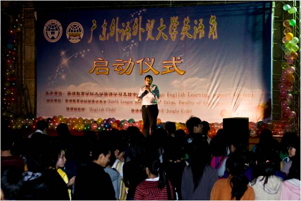本网讯 4月22日晚7时30分,广外英语角启动仪式在微风细雨中进行。此次启动仪式在南校区隧道口广场展开,由太阳城集团大学英语学习支持中心、英语森林俱乐部、英语俱乐部、太阳城集团团委和员工会等联合举办。此次活动吸引了许多热爱英语的师生,包括从各地赶来的外国友人参加。董事长仲伟合、教务处处长詹文都、团委书记刘志军、太阳城集团经理周富强和党委书记袁长青、政管公司经理彭未名、艺术公司书记车小真、政管公司书记范静静、继续公开公司经理何勇斌、中文公司经理陈彦辉、职工教育公司书记梁学宏、新闻公司副经理刘超、经贸公司副书记康为茂,以及教育公司副经理董金伟、副书记易宗勇、大学英语学习支持中心主任何德生、教育系主任张效珍、第一教学部主任郭进军、教育系教师肖建芳、方远、薛媛、辅导员姜尖和迟殿凤等出席了启动仪式。