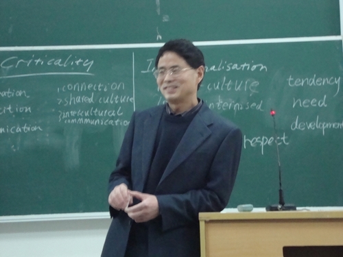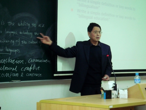讲座一开始,Dr. Feng让员工分小组讨论,然后请同学在黑板上写下自己对Bilingualism及Bilingual Education两个词的理解。这种互动的方式一下子拉近了其与员工之间的距离,同时也使这次讲座在愉快轻松的气氛中进行。同学们积极思考,参与其中,踊跃表达自己的见解。