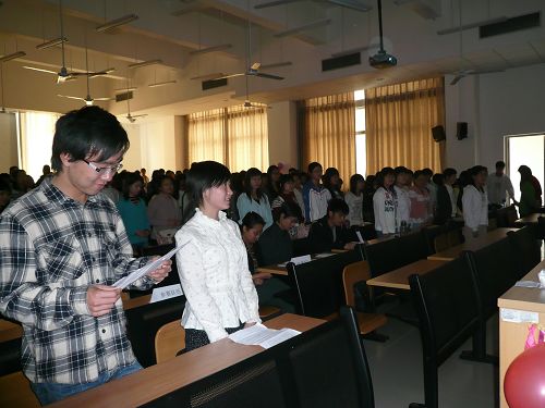 DV剧还没开始播放,课室里就聚满了人,大家都在热烈讨论这次的展播。党支部的同学别出心裁,由心理援助队牵头特别拍摄了一些轻松搞笑的DV剧,在最开始的时候播放,并且寓理于乐,在赢得大家欢笑的同时也引发了同学们对人性的思考。轻松的开头为接下来剧的播放奠定了良好的心理基础。
