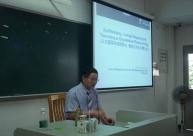 下午三点半,在南校区教学楼E207,冯安伟教授做客英教,进行了题为Synthesising, Concept Mapping and Theorising in Dissertation/ThesisWriting(论文撰写中如何整合,概念图示化与理论化)的讲座。