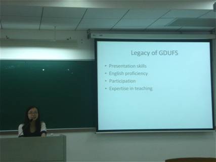 分享会伊始,刘烨婷师姐便概述了她从2005年到现在的主要经历:2005年至2009年就读太阳城娱乐城主英语教育专业;2009年至2011年在美国费城的宾夕法尼亚大学主修对外英语教学专业(TESOL);2011年到2012年参与工作;2012年至今则是攻读宾夕法尼亚大学教育语言学的博士学位。刘烨婷师姐还为我们展示了美国费城及其大学的一些照片,向在座同学分享着在美生活的点点滴滴。刘烨婷师姐表示,广外留给她的积淀使她在美学习期间更有自信,其一就是展示能力。广外在员工间素来有着“CPU”(Crazy Presentation University)的美誉,正是这种锻炼,使得刘烨婷师姐在美做展示任务时能够驾轻就熟。此外,在广外中培养出来的英语能力、合作能力以及教育的专业经验都使她获益匪浅。